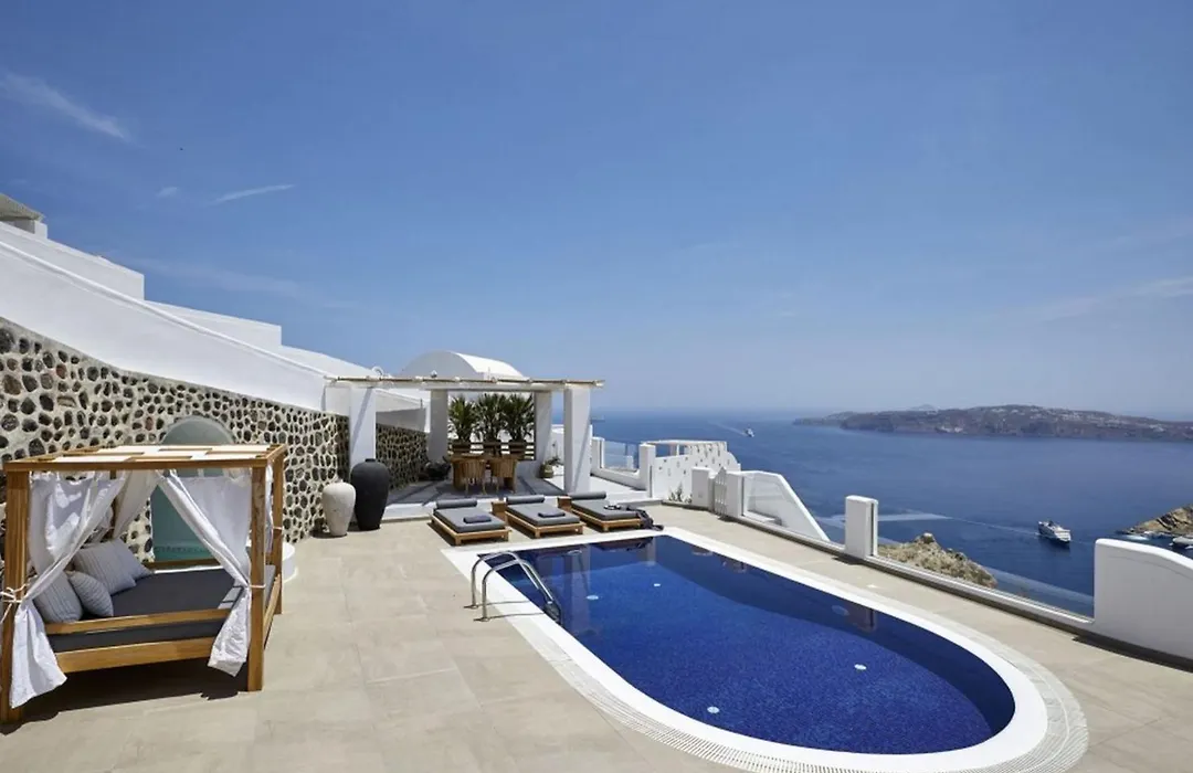 Skaros Rock Ruins is around 2 km away and Santorini International airport is 10 km from the Fira villa.